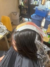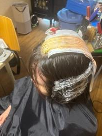 3, トップの毛先にブリーチ剤塗布 放置30分