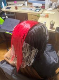 まず ブリーチ剤と普通の6%2剤1:1をよく混ぜますそこに、イチゴ2剤を1〜2倍にいれてよく混ぜて塗布。
